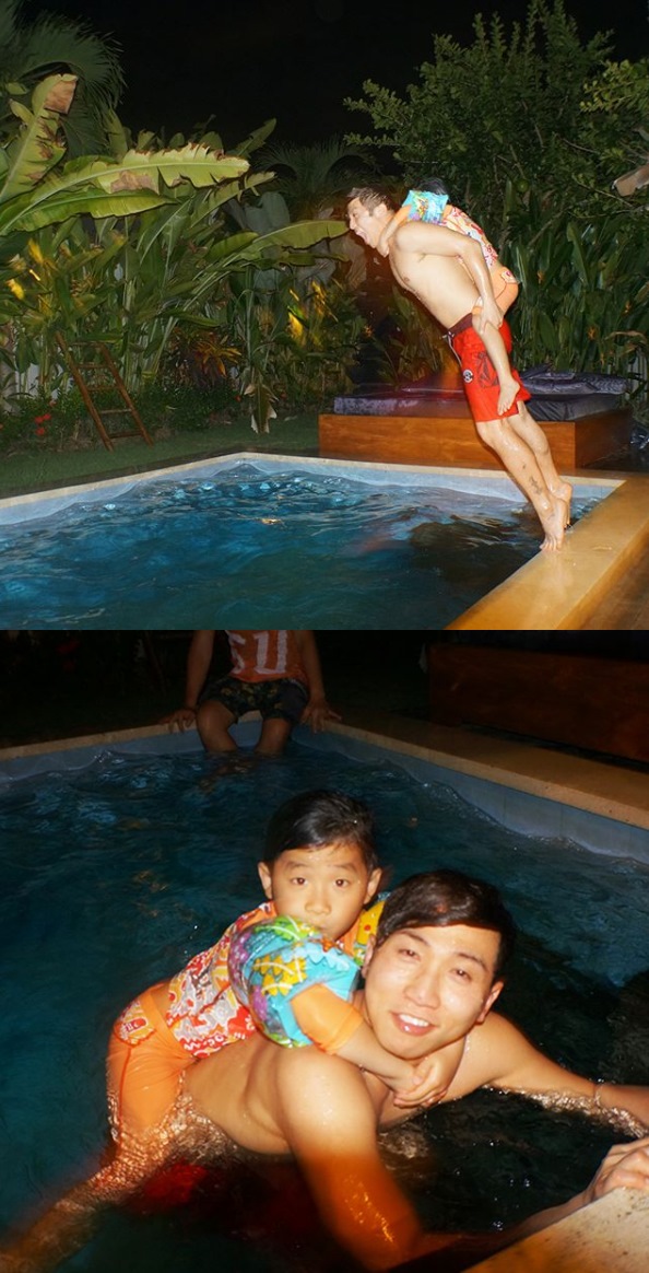 공개된 사진 속에는 유세윤과 그의 아들이 수영장에서 보낸 일상이 담겨있다. 유세윤의 아들은 아빠 등에 찰싹 달라붙어 물놀이를 즐기고 있다. 유세윤은 '뼈그맨'답게 코믹한 표정으로 유쾌한 매력을 뽐내기도 했다.