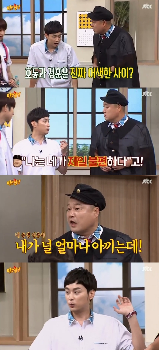 이날 강호동은 타 방송 프로그램에서 민경훈이 자신이 어색하다고 발언한 것에 대해 사실을 추궁했다.