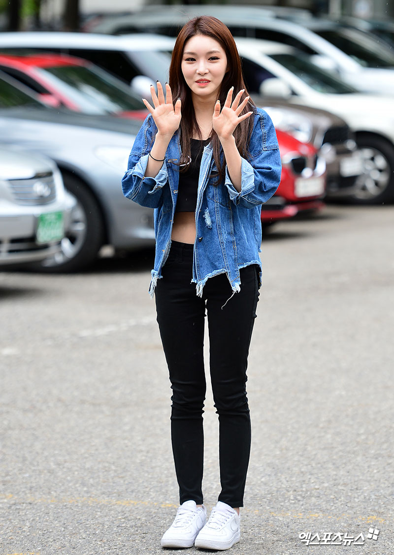 [엑스포츠뉴스 김한준 기자] 14일 오후 서울 여의도동 KBS신관 공개홀에서 열린 KBS2 '불후의 명곡' 리허설에 참석한 청하가 출근길에 포토타임을 갖고 있다.
