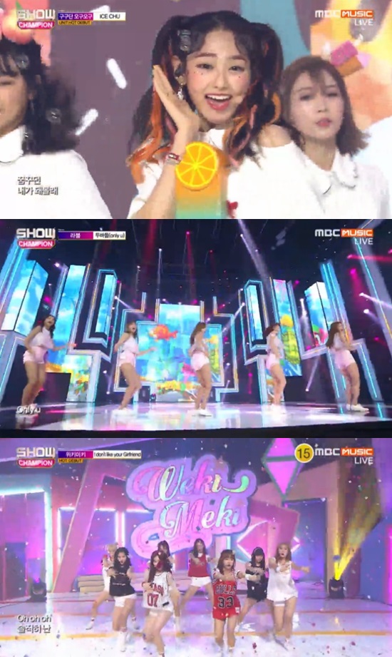 이날 '쇼챔피언'에는 워너원의 데뷔무대가 펼쳐졌다. '활활'과 '에너제틱' 두 곡으로 상반된 매력을 뽐낸 것. 구구단 오구오구도 상큼한 데뷔무대를 선보였다.