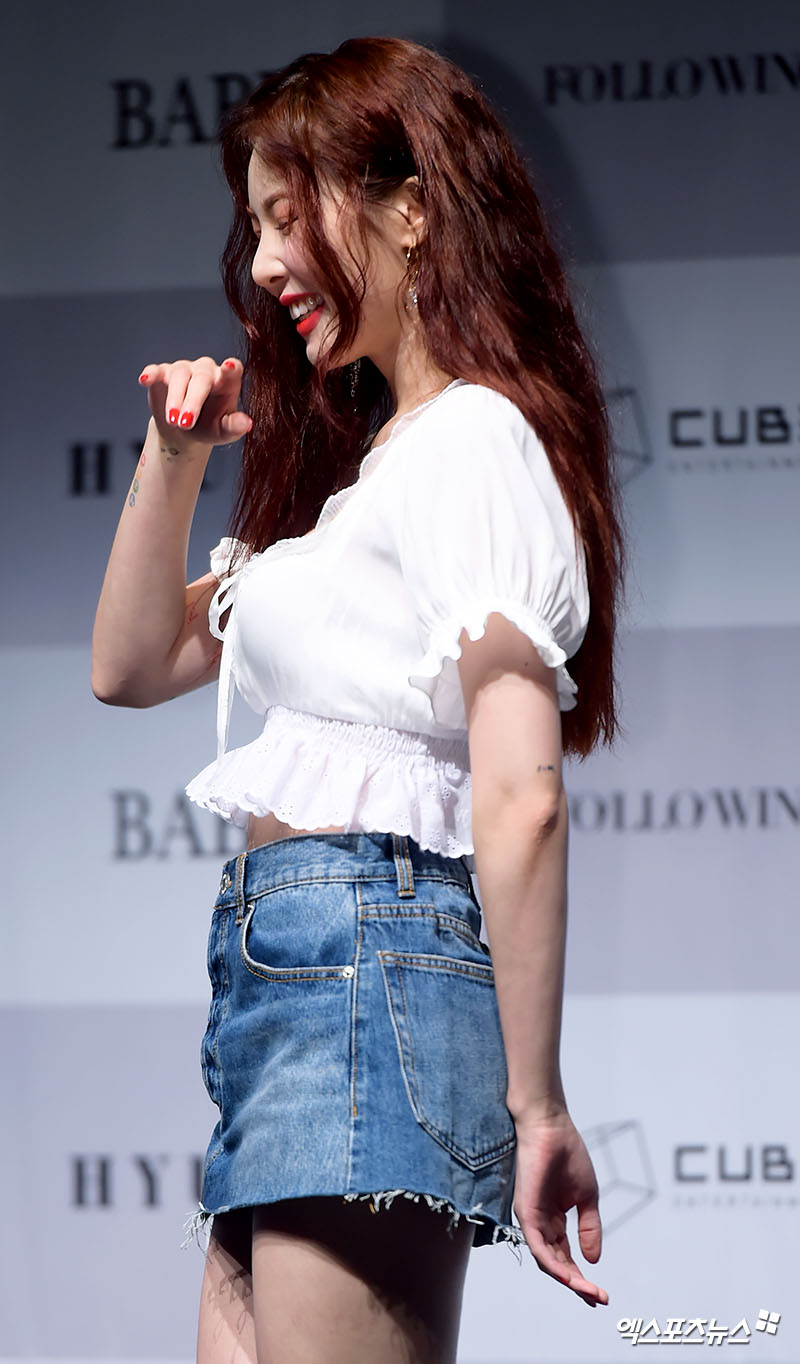 [엑스포츠뉴스 서예진 기자] 29일 오후 서울 한남동 블루스퀘어에서 가수 현아의 여섯 번째 미니앨범 ‘Following’ 발매 기자간담회가 열렸다