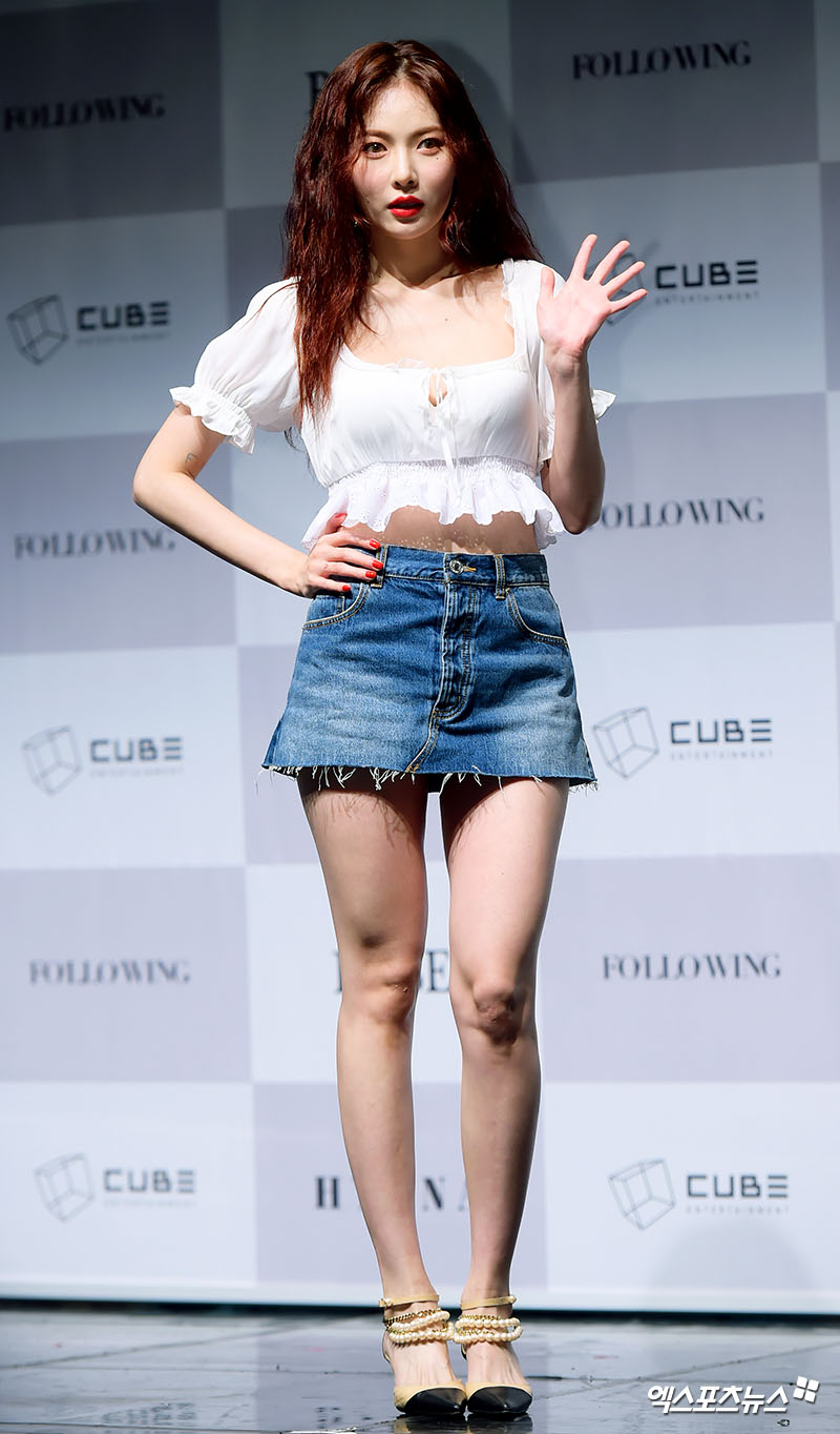 [엑스포츠뉴스 서예진 기자] 29일 오후 서울 한남동 블루스퀘어에서 가수 현아의 여섯 번째 미니앨범 ‘Following’ 발매 기자간담회가 열렸다