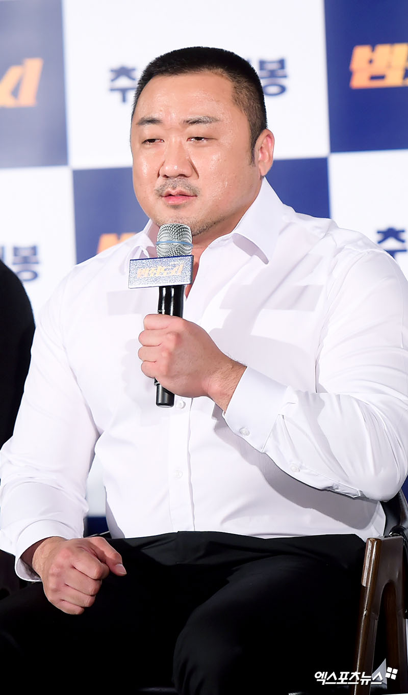 이날 제작보고회회에 참석한 배우 마동석이 기자간담회를 갖고 있다.