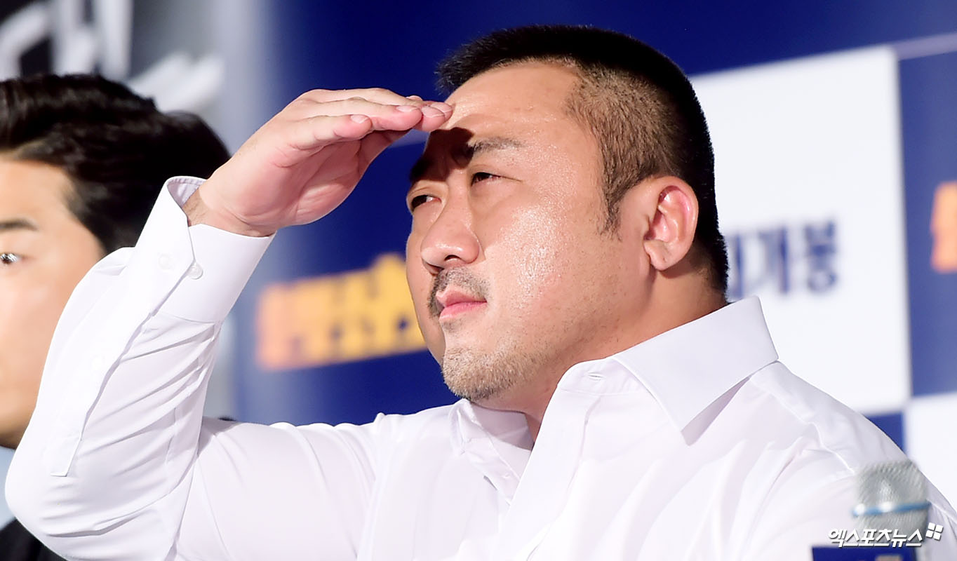 이날 제작보고회회에 참석한 배우 마동석이 기자간담회를 갖고 있다.