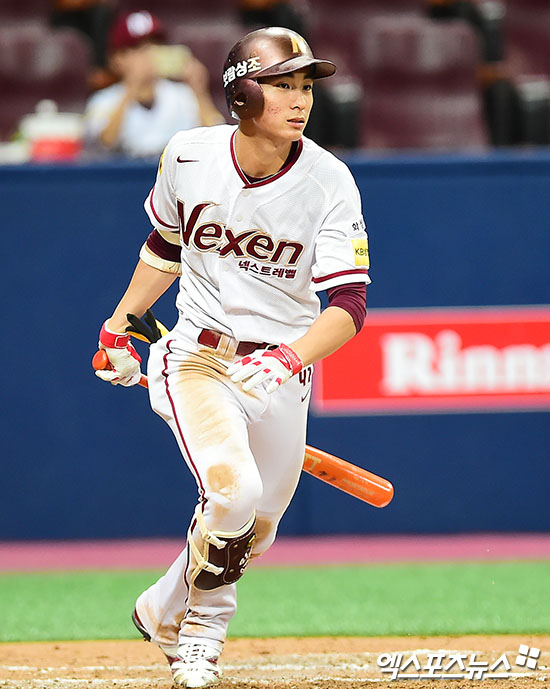 [엑스포츠뉴스 김한준 기자] 30일 오후 서울 구로구 고척스카이돔에서 열린 '2017 타이어뱅크 KBO리그' SK 와이번스와 넥센 히어로즈의 경기, 5회말 넥센 이정후가 타격을 하고 있다.