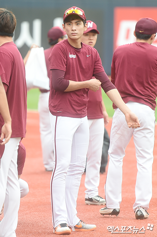 [엑스포츠뉴스 수원, 박지영 기자] 5일 오후 경기도 수원시 장안구 수원kt위즈파크에서 열린 '2017 타이어뱅크 KBO리그' 넥센 히어로즈와 kt 위즈의 경기에 앞서 넥센 이정후가 그라운드에서 몸을 풀고 있다.