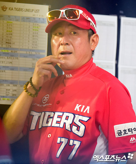 [엑스포츠뉴스 김한준 기자] 5일 오후 서울 송파구 잠실야구장에서 '2017 타이어뱅크 KBO리그' KIA 타이거즈와 LG 트윈스의 경기, KIA 김기태 감독이 더그아웃에서 생각에 잠겨있다.