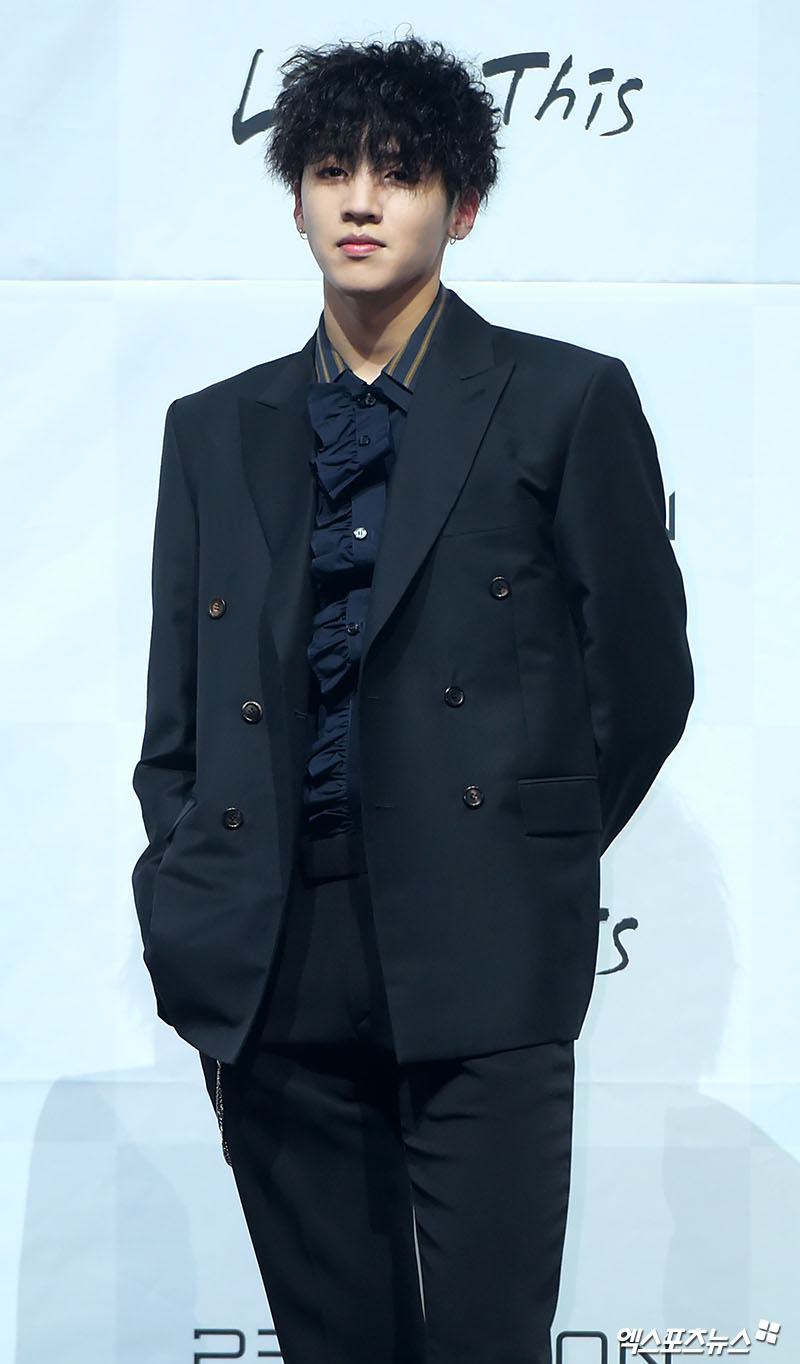 이날 쇼케이스에 참석한 펜타곤 우석이 포토타임을 갖고 있다.
