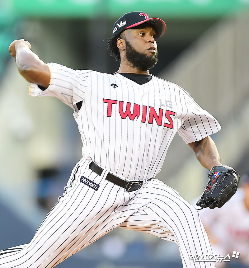 [엑스포츠뉴스 김한준 기자] 12일 오후 서울 송파구 잠실야구장에서 열린 '2017 타이어뱅크 KBO리그' 롯데 자이언츠와 LG 트윈스의 경기, 1회초 LG 선발투수 소사가 공을 힘차게 던지고 있다.