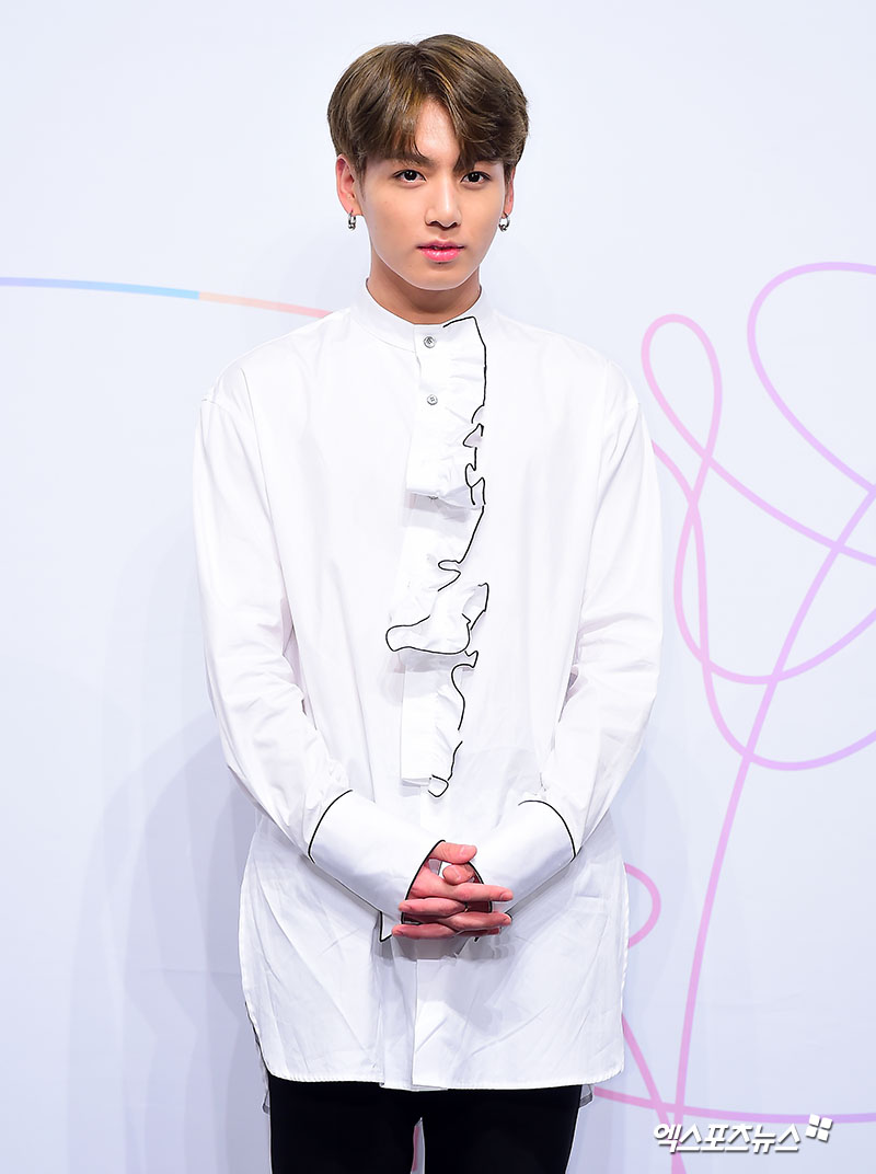 [엑스포츠뉴스 김한준 기자] 18일 오후 서울 소공동 롯데호텔 서울에서 열린 방탄소년단 LOVE YOURSELF 承 'Her' 발매 기자간담회에 참석한 방탄소년단 정국이 포토타임을 갖고 있다.
