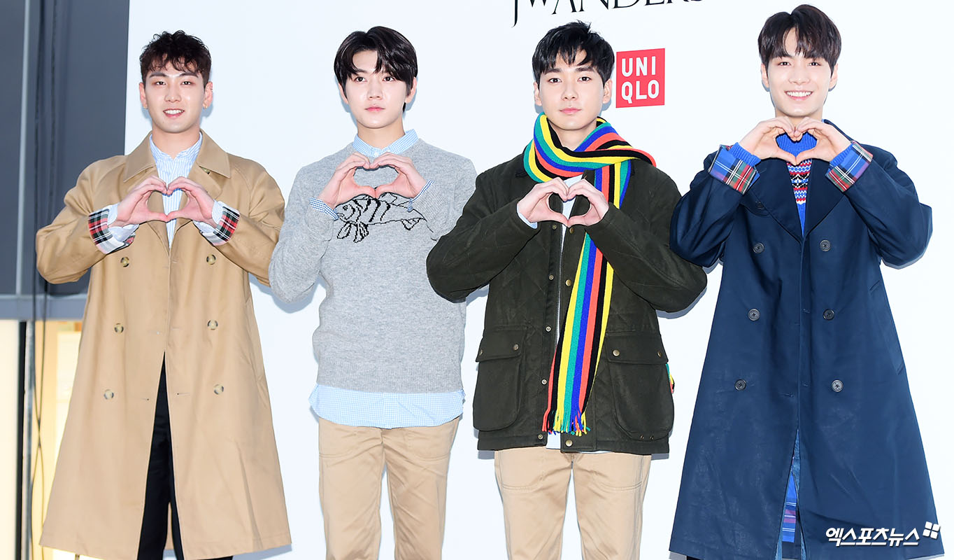 [엑스포츠뉴스 서예진 기자] 21일 오후 서울 신사동의 한 의류브랜드 매장에서 진행된 론칭 행사에 참석한 그룹 뉴이스트가 포즈를 취하고 있다.