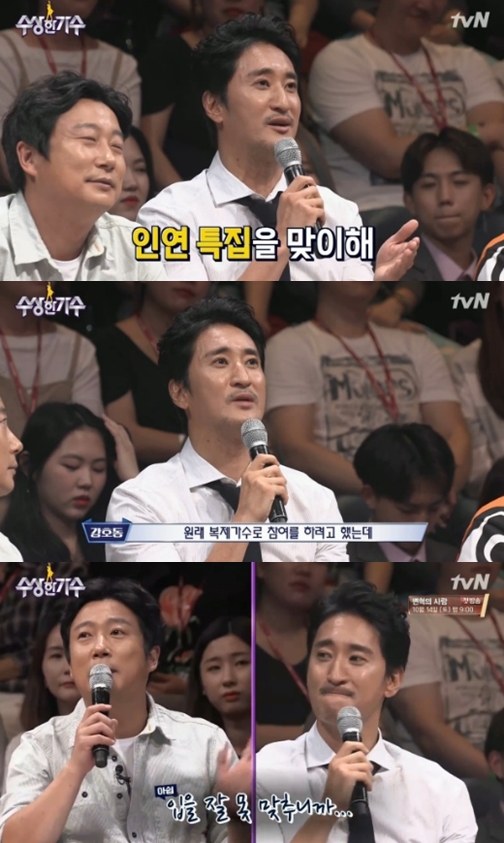 이날 신현준은 판정단 자격으로 '수상한 가수'를 찾았다. 그는 "'수상한 가수' 인연 특집이라고 해서 강호동, 이수근, 김형석과 인연이 있어 나오게 됐다"고 출연하게 된 배경을 밝혔다.