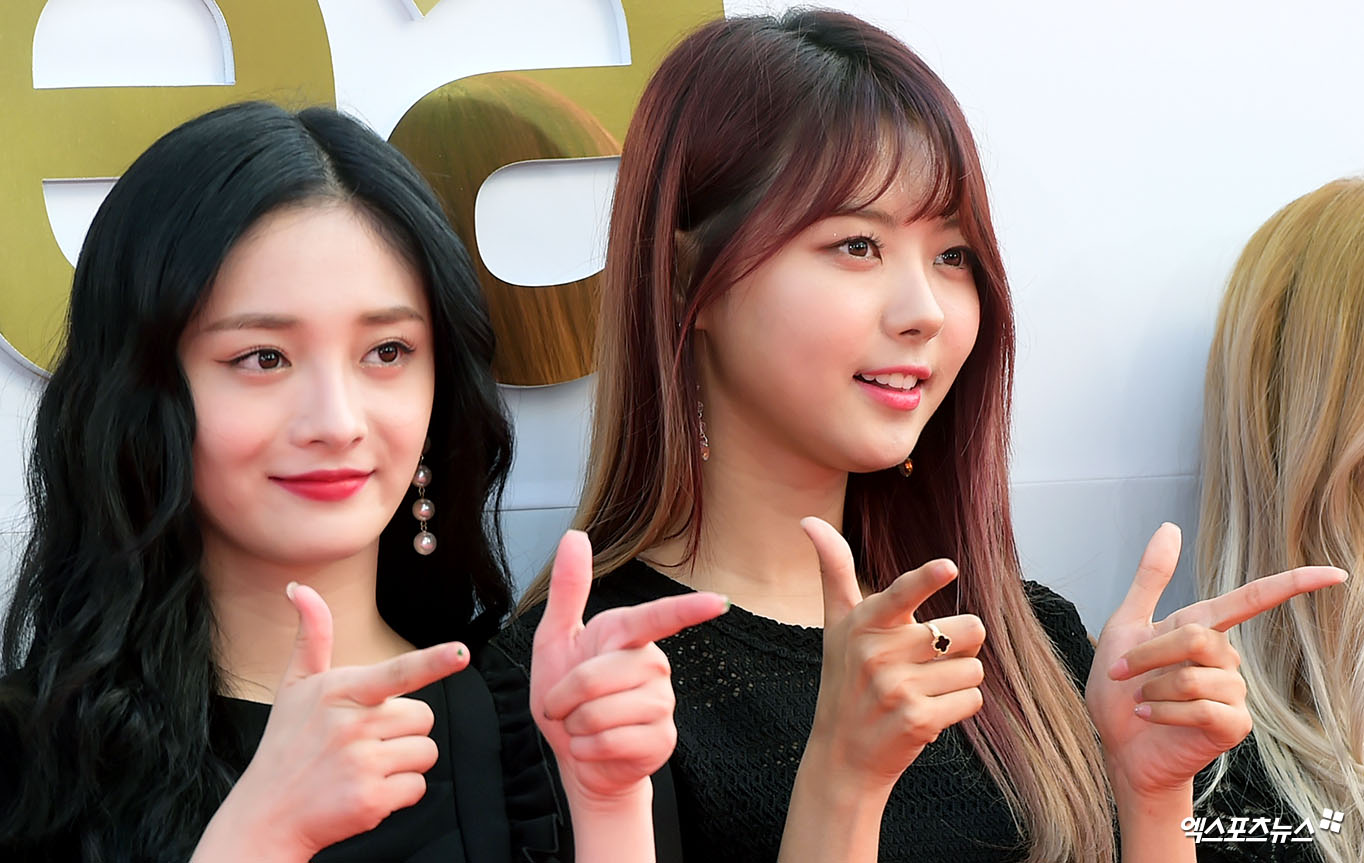 [엑스포츠뉴스 서예진 기자] 30일 오후 서울 고척동 고척스카이돔에서 열린 ‘2017 코리아 뮤직 페스티벌’에 참석한 프리스틴 결경, 나영이 포토타임을 갖고 있다.