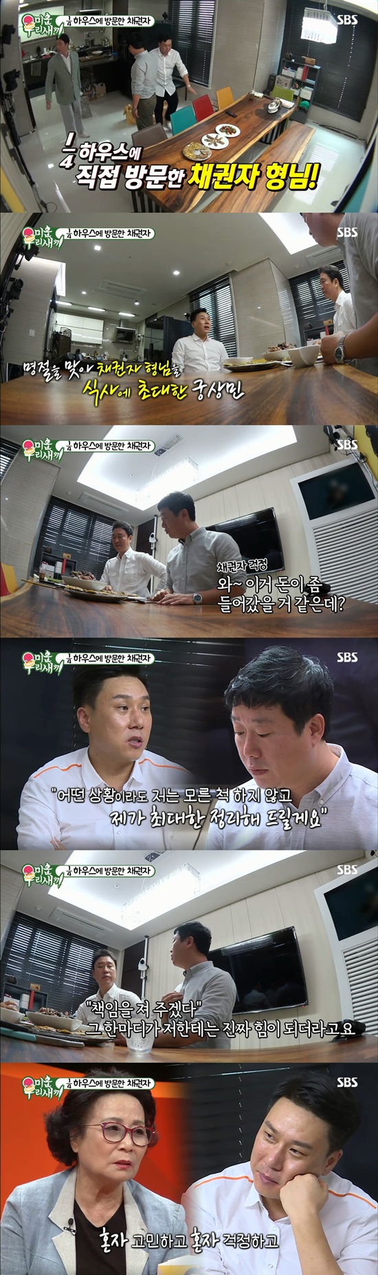 이날 방송의 최고의 1분은 이상민의 출연분이 차지했다. 이상민은 추석을 맞아 채권자들을 집에 모시고 식사를 대접했다.