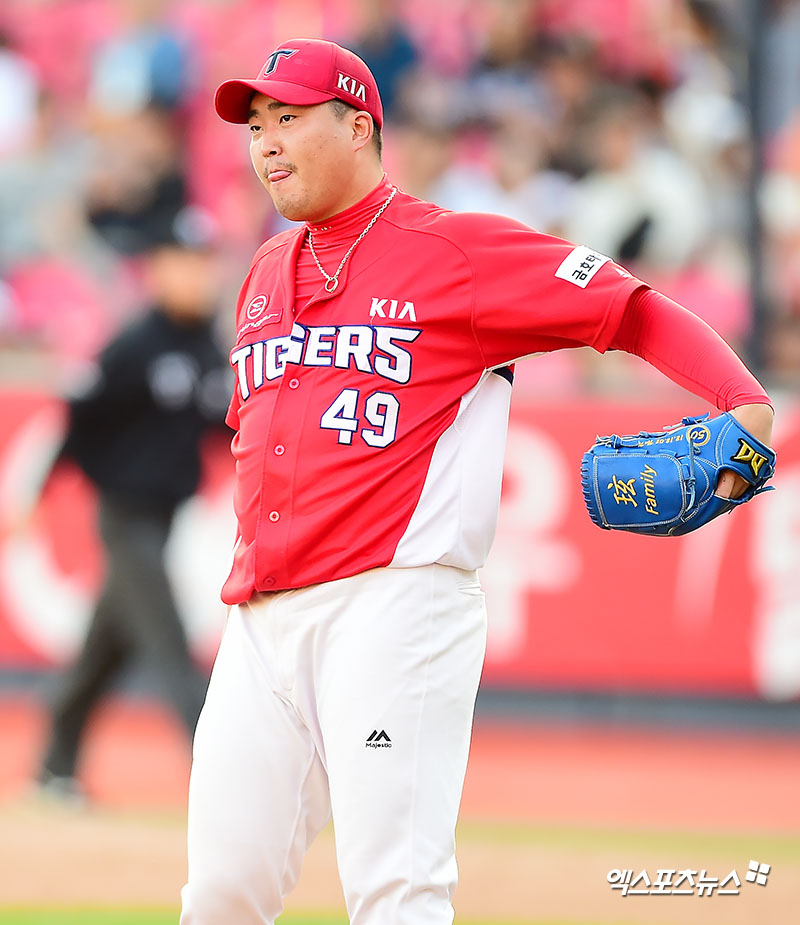 이날 경기에서 승리한 KIA 김세현이 기뻐하고 있다.