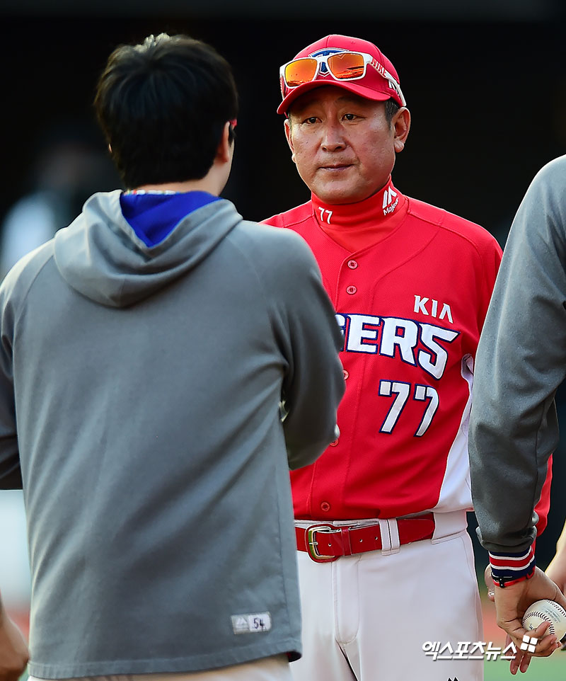'양현종 승리 축하하는 김기태 감독'[포토]
