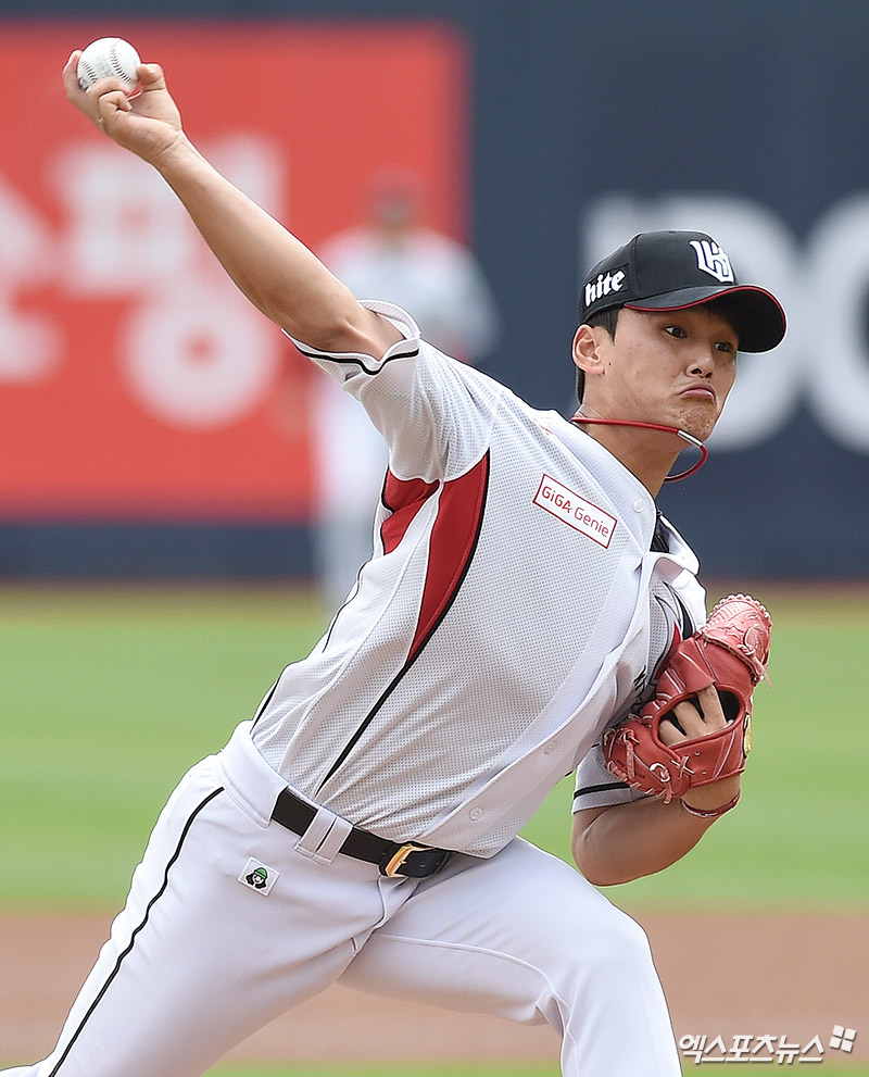 [엑스포츠뉴스 수원, 박지영 기자] 3일 오후 경기도 수원시 장안구 수원kt위즈파크에서 열린 '2017 타이어뱅크 KBO리그' KIA 타이거즈와 kt 위즈의 경기, 1회초 kt 선발투수 주권이 역투하고 있다.