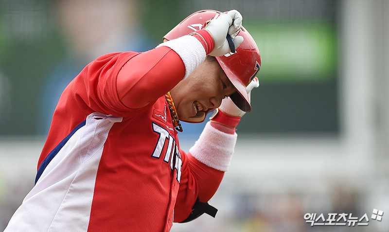 [엑스포츠뉴스 수원, 박지영 기자] 3일 오후 경기도 수원시 장안구 수원kt위즈파크에서 열린 '2017 타이어뱅크 KBO리그' KIA 타이거즈와 kt 위즈의 경기, 5회초 2사 1루 KIA 나지완이 2점홈런을 때려낸 뒤 베이스를 돌고 있다.