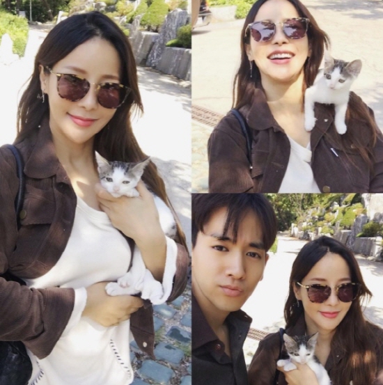 사진 속 미나는 고양이를 안고 공개 연인 류필립과 셀카를 찍고 있다. 환하게 웃는 얼굴로 동안 미모를 과시했다.