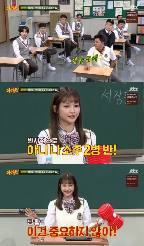 이날 하연수는 '나를 맞혀봐' 시간에 '헤어진 연인에게 잘 보이려고 한 일'에 대해 질문했다. 이에 멤버들은 "술을 매일 먹고 찾아갔다"고 말했다.
