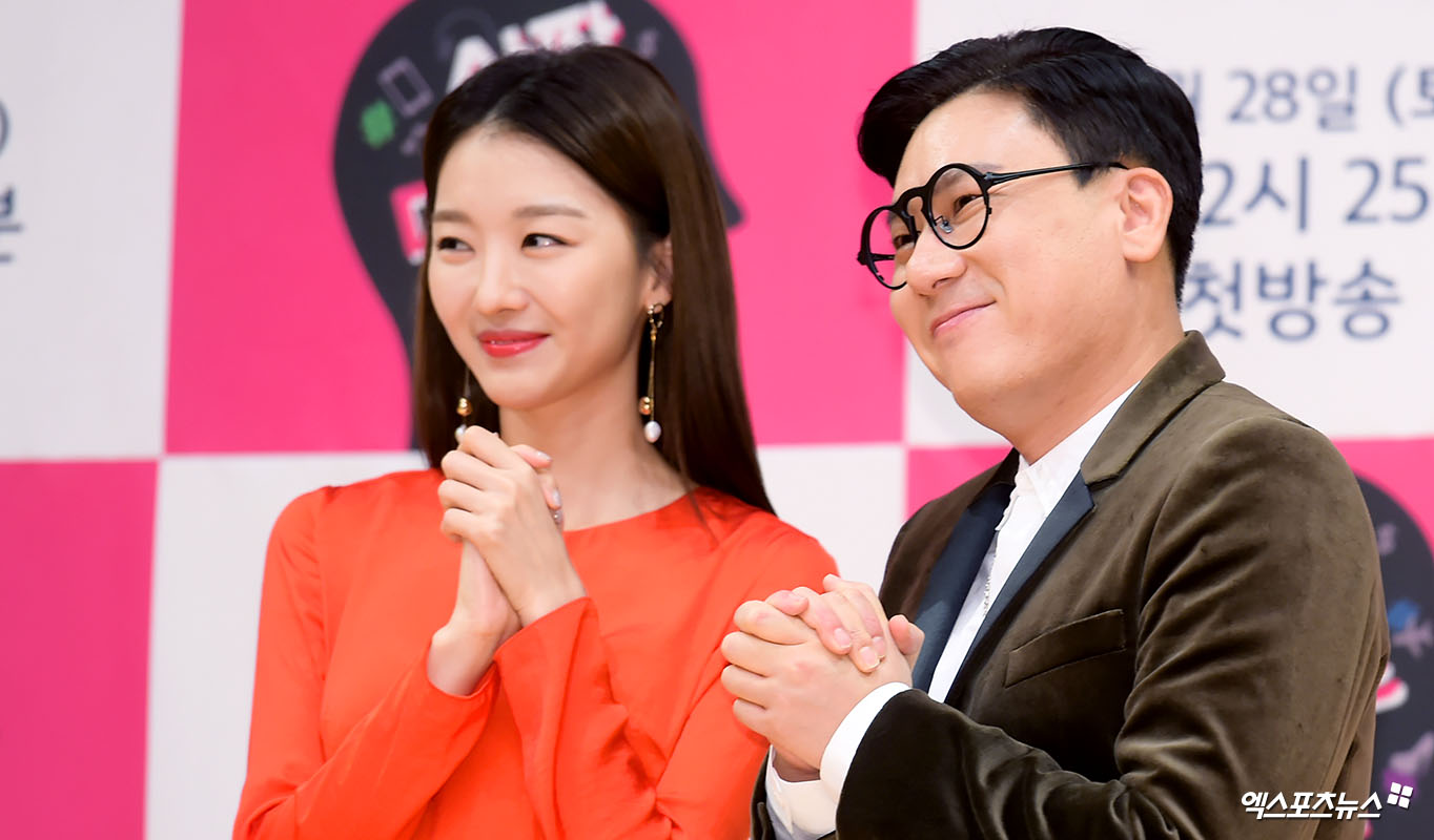 [엑스포츠뉴스 서예진 기자] 25일 오후 서울 목동 SBS에서 진행된 예능프로그램 ‘살짝 미쳐도 좋아’ 제작발표회에 참석한 장희진, 이상민이 포토타임을 갖고 있다.