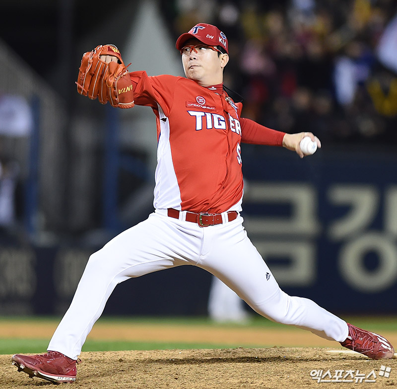 [엑스포츠뉴스 박지영 기자] 30일 오후 서울 송파구 잠실야구장에서 열린 '2017 타이어뱅크 KBO리그 포스트시즌' KIA 타이거즈와 두산 베어스의 한국시리즈 5차전 경기, 9회말 무사 KIA 양현종이 역투하고 있다.