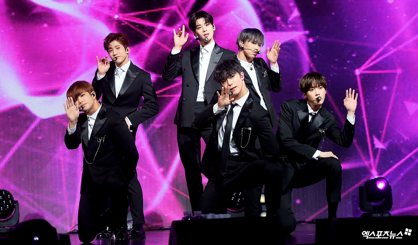 이날 쇼케이스에 참석한 아스트로가 멋진 무대를 선보이고 있다.