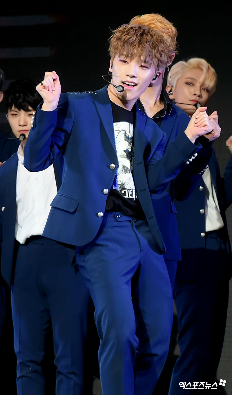 이날 쇼케이스에 참석한 세븐틴 디노가 멋진 무대를 선보이고 있다.
