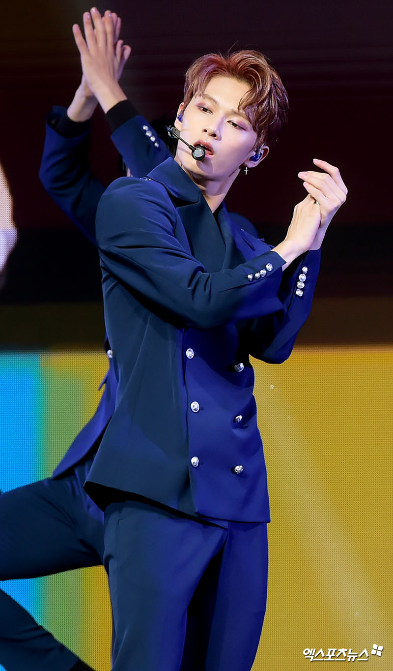 이날 쇼케이스에 참석한 세븐틴 준이 멋진 무대를 선보이고 있다.