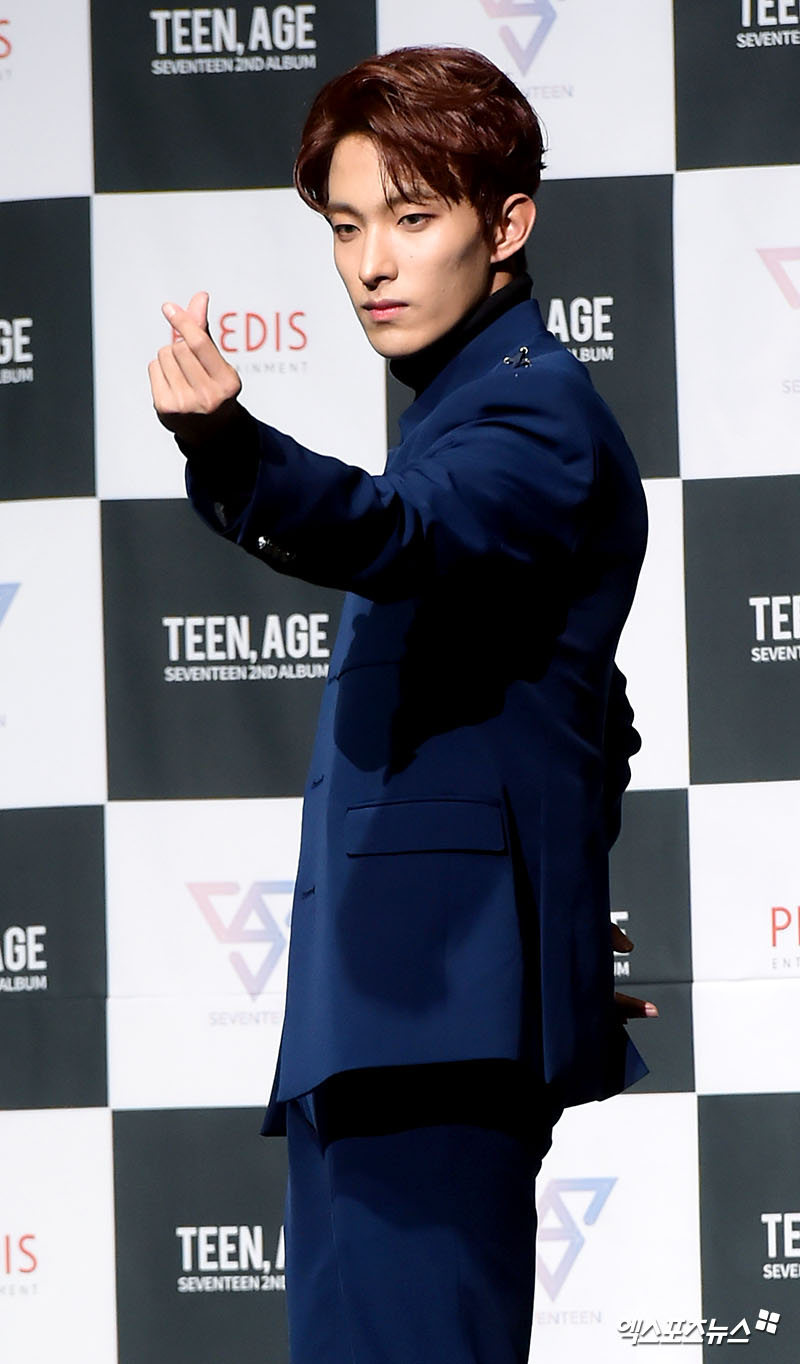 이날 쇼케이스에 참석한 세븐틴 도겸이 포토타임을 갖고 있다.
