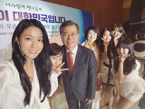 [엑스포츠뉴스 이아영 기자] AOA가 문재인 대통령 내외를 만나 기념사진을 남겼다.