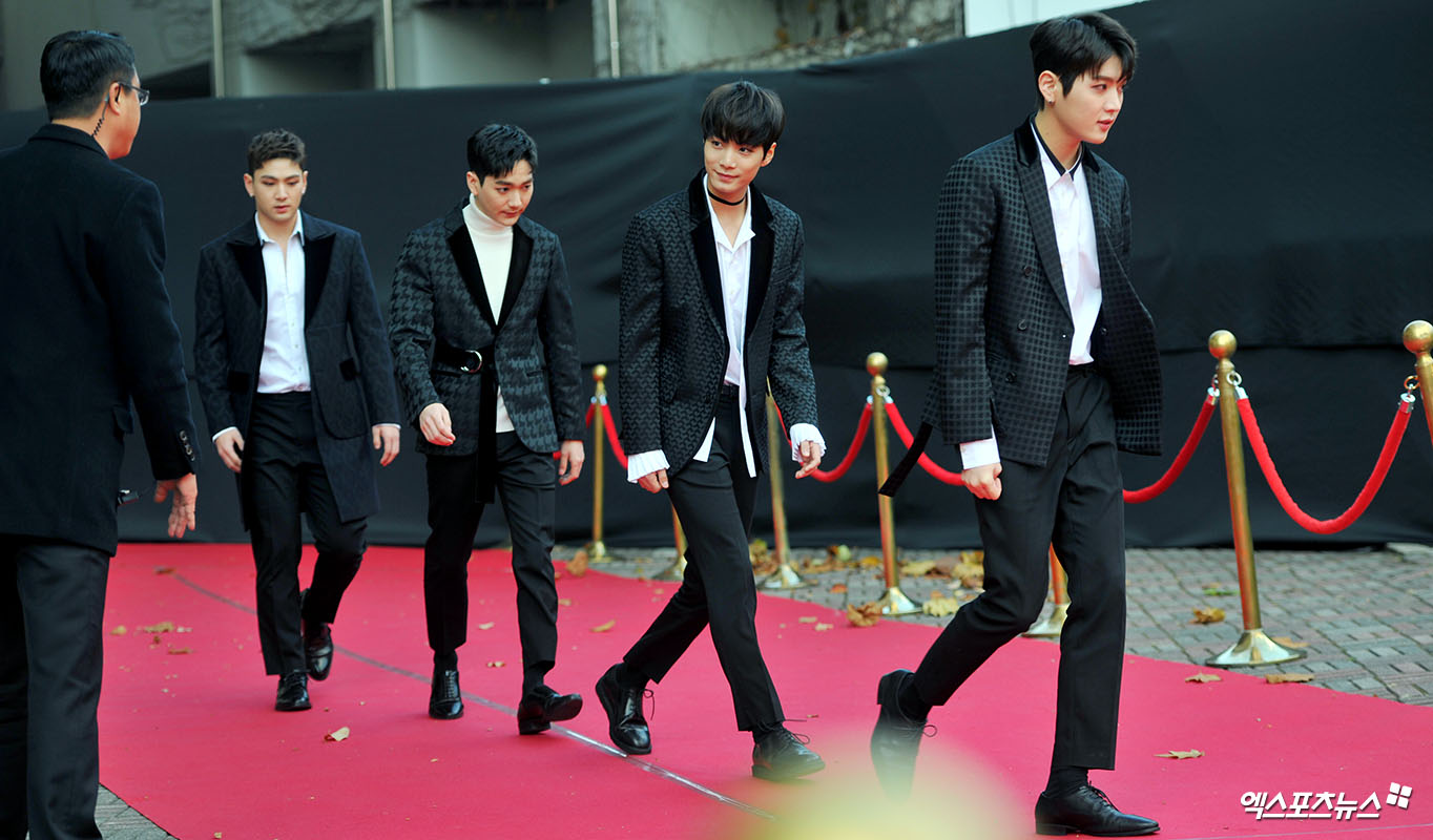 [엑스포츠뉴스 서예진 기자] 15일 오후 서울 송파구 잠실동 잠실실내체육관에서 열린 '2017 아시아 아티스트 어워즈(AAA)' 레드카펫에 참석한 뉴이스트 W가 포토타임을 갖기 위해 입장하고 있다.