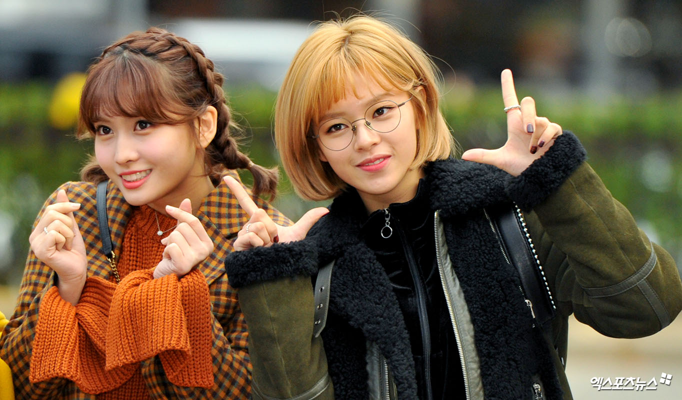 [엑스포츠뉴스 서예진 기자] 17일 오전 서울 여의도동 KBS신관에서 열린 KBS '뮤직뱅크' 리허설에 참석한 트와이스 모모, 정연이 출근길에 나서고 있다.
