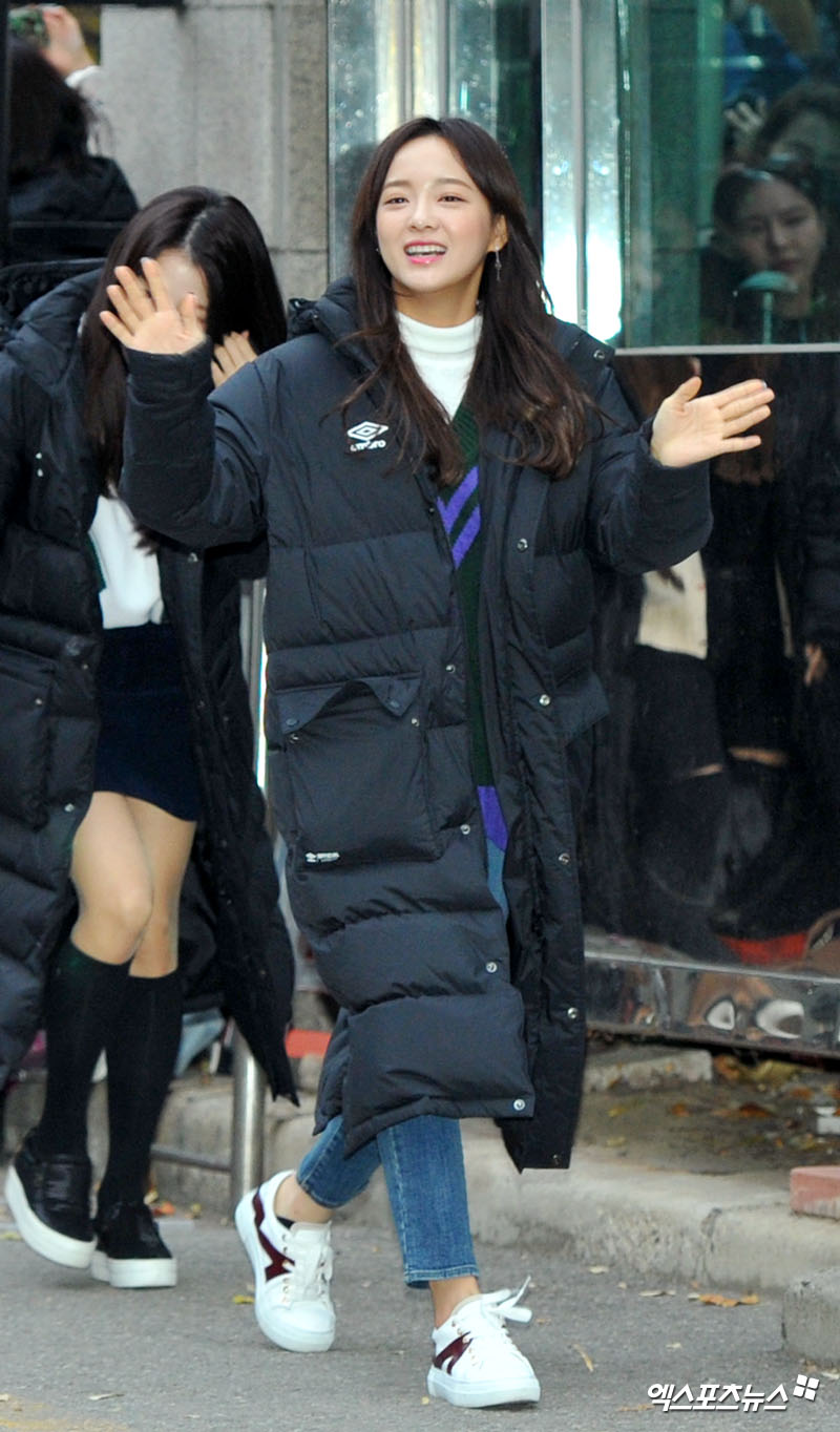 [엑스포츠뉴스 서예진 기자] 17일 오전 서울 여의도동 KBS신관에서 열린 KBS '뮤직뱅크' 리허설에 참석한 구구단 김세정이 출근길에 나서고 있다.