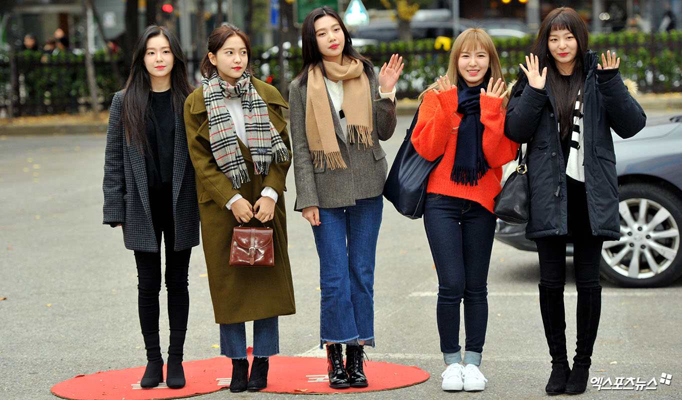 [엑스포츠뉴스 서예진 기자] 17일 오전 서울 여의도동 KBS신관에서 열린 KBS '뮤직뱅크' 리허설에 참석한 레드벨벳이 출근길에 나서고 있다.