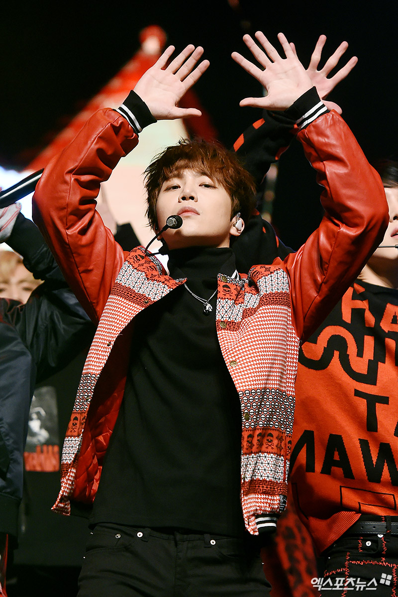 [엑스포츠뉴스 박지영 기자] 22일 오후 서울 한남동 블루스퀘어 아이마켓홀에서 펜타곤 다섯 번째 미니 앨범 'DEMO_02' 발매 기념 쇼케이스가 열렸다. 이날 쇼케이스에 참석한 펜타곤 진호가 멋진 무대를 선보이고 있다.