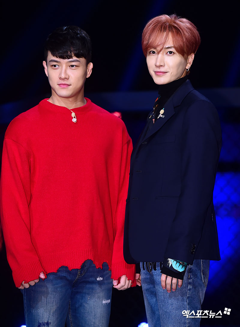[엑스포츠뉴스 고양, 김한준 기자] 26일 오후 경기도 고양시 장항동 빛마루 방송지원센터에서 열린 MBC '겁 없는 녀석들' 현장공개 및 기자간담회에 참석한 권민석과 슈퍼주니어 이특이 포토타임을 갖고 있다.