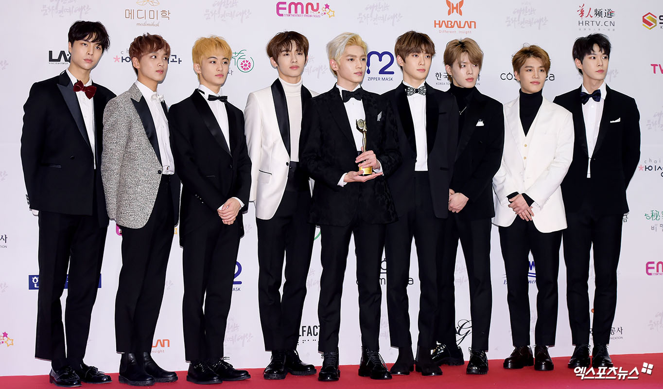 [엑스포츠뉴스 서예진 기자] 28일 오후 서울 여의도동 63스퀘어에서 진행된 ‘제25회 대한민국 문화 연예대상’에 참석한 NCT 127이 포토타임을 갖고 있다.