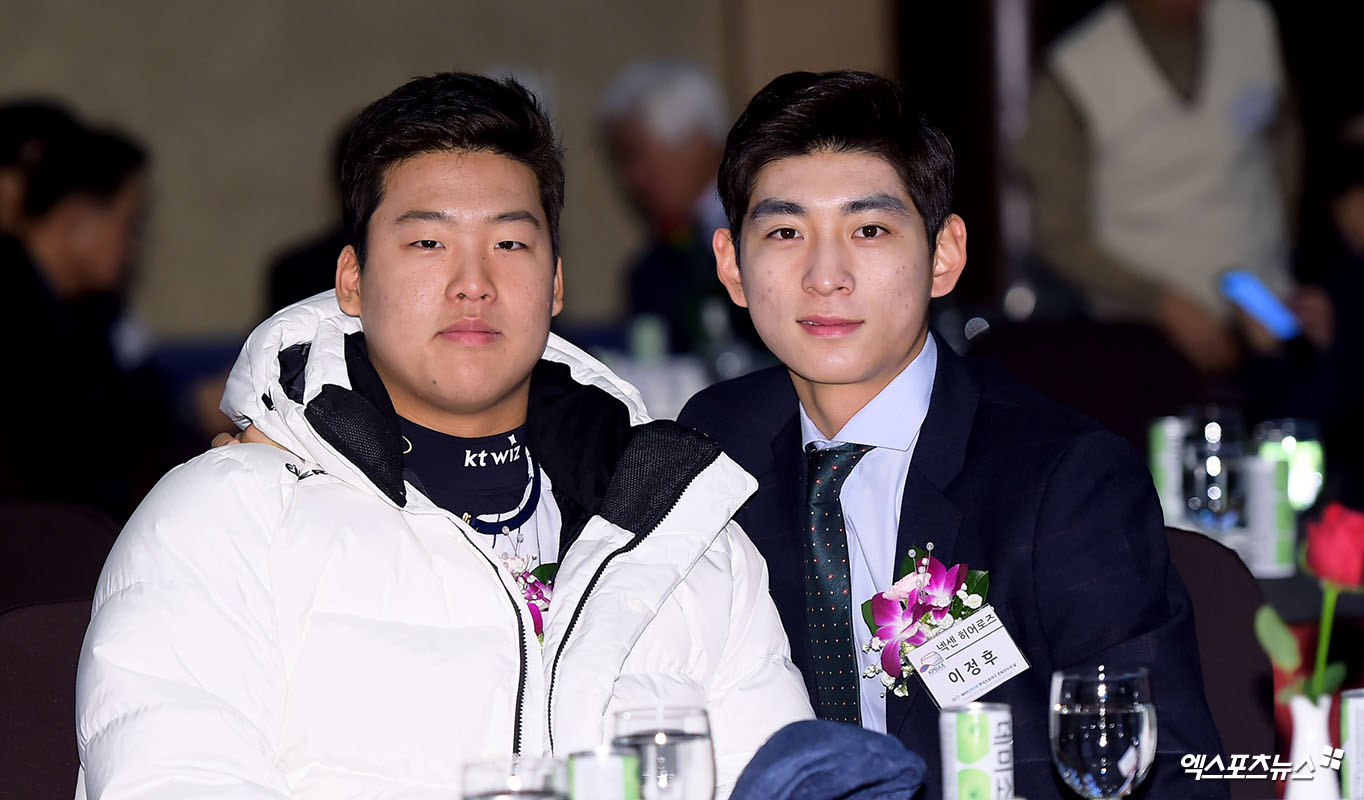 이날 강백호, 이정후가 포토타임을 갖고 있다.