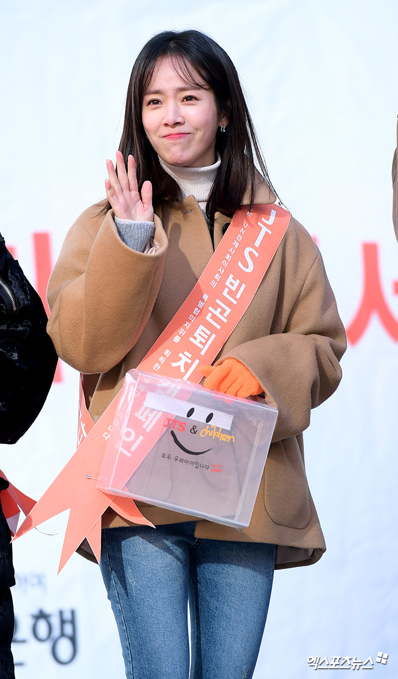 이날 거리모금 행사에 참석한 배우 한지민이 시민에게 인사를 하고 있다.
