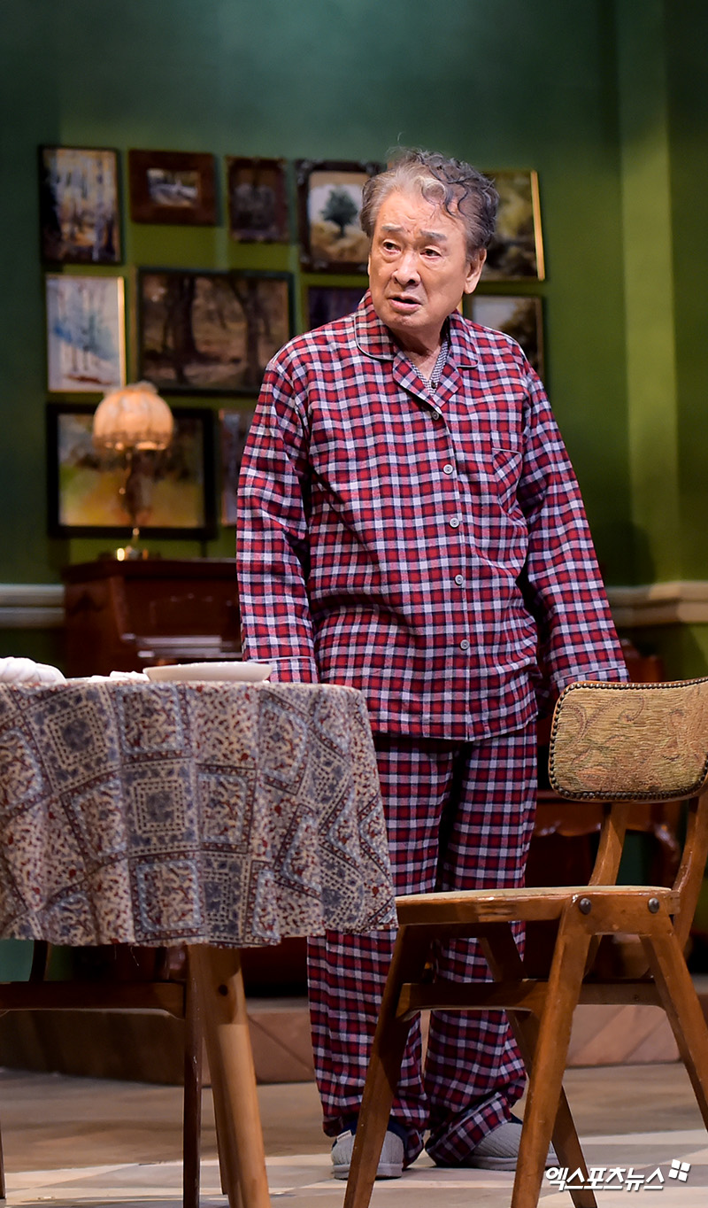 이날 프레스콜에 참석한 배우 이순재가 시연을 선보이고 있다.