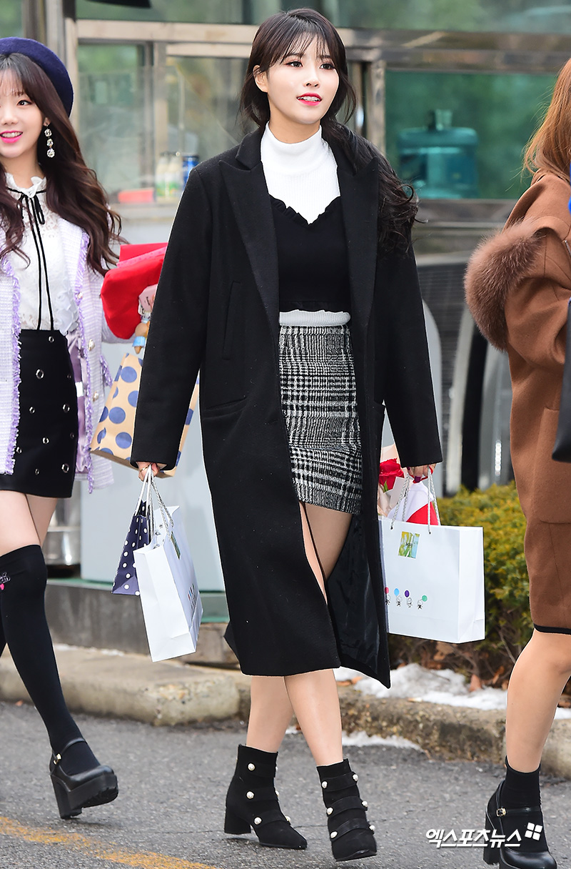 뮤직뱅크 리허설에 참석한 러블리즈 이미주가 포즈를 취하고 있다.