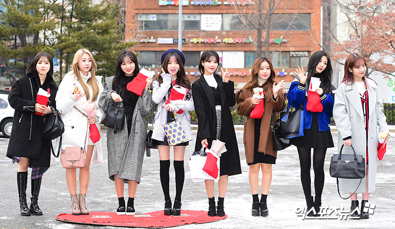 뮤직뱅크 리허설에 참석한 러블리즈가 포즈를 취하고 있다.