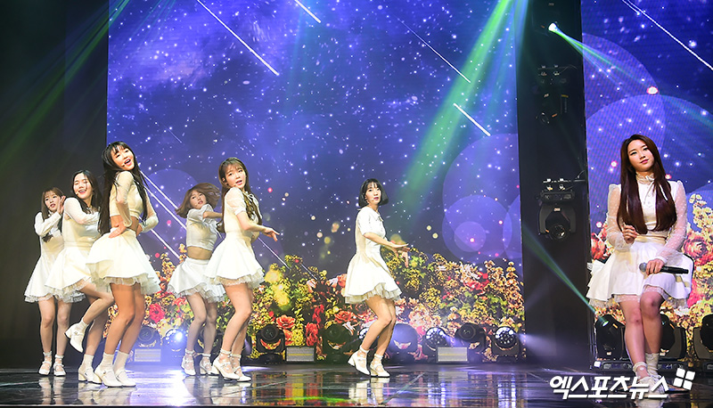 이날 쇼케이스에 참석한 오마이걸이 멋진 공연을 선보이고 있다.