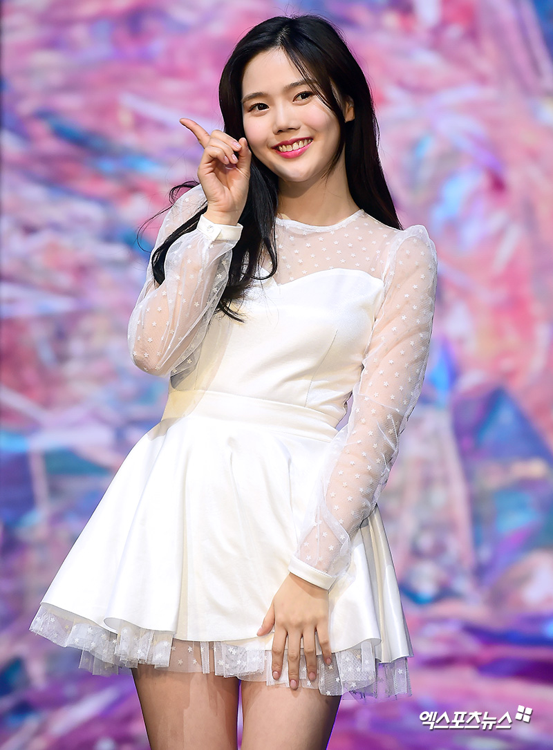 이날 쇼케이스에 참석한 오마이걸 효정이 포토타임을 갖고 있다.