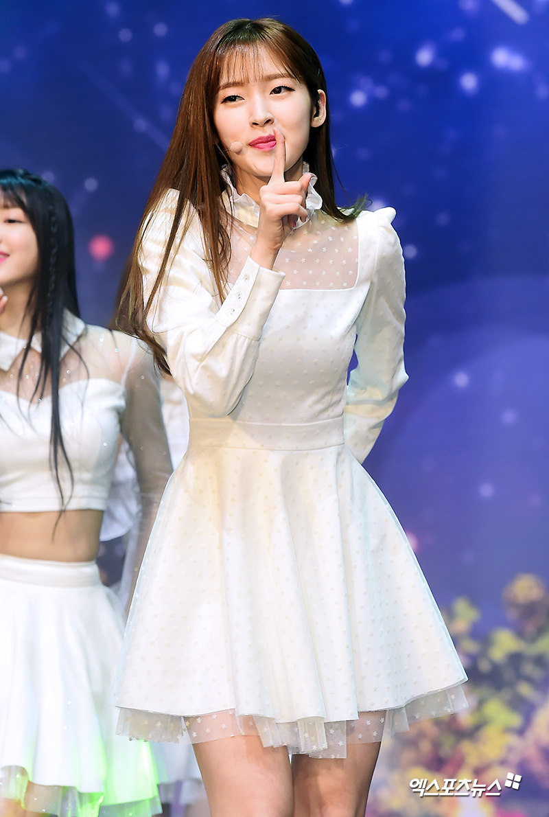 이날 쇼케이스에 참석한 오마이걸 아린이 멋진 공연을 선보이고 있다.