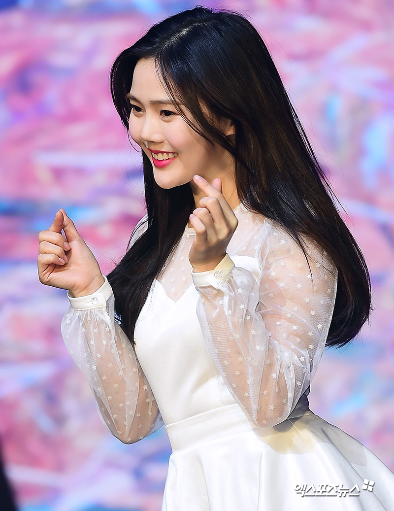 이날 쇼케이스에 참석한 오마이걸 효정이 포토타임을 갖고 있다.