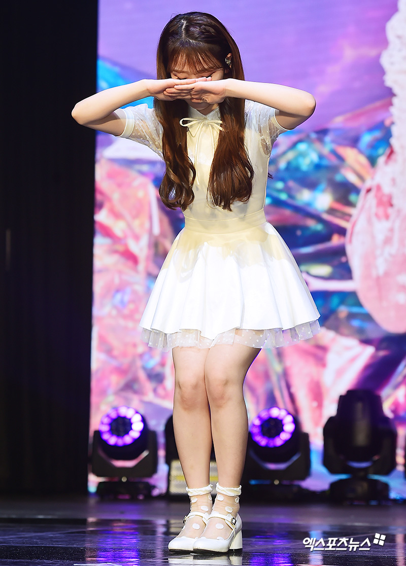 이날 쇼케이스에 참석한 오마이걸 승희가 포토타임을 갖고 있다.