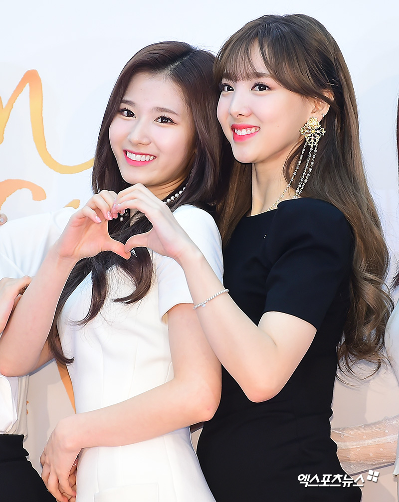 이날 음반 부문 시상식에 참석한 트와이스 사나와 나연이 포토타임을 갖고 있다.
