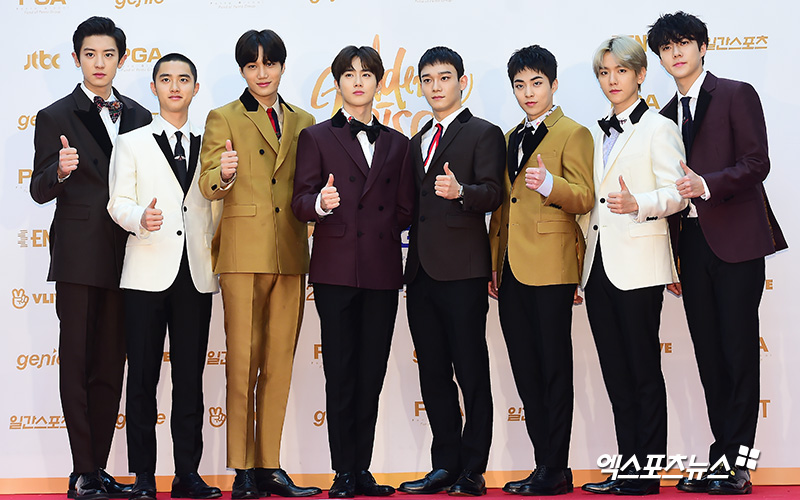 이날 음반 부문 시상식에 참석한 엑소가 포토타임을 갖고 있다.